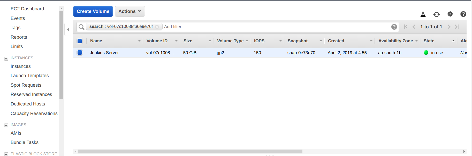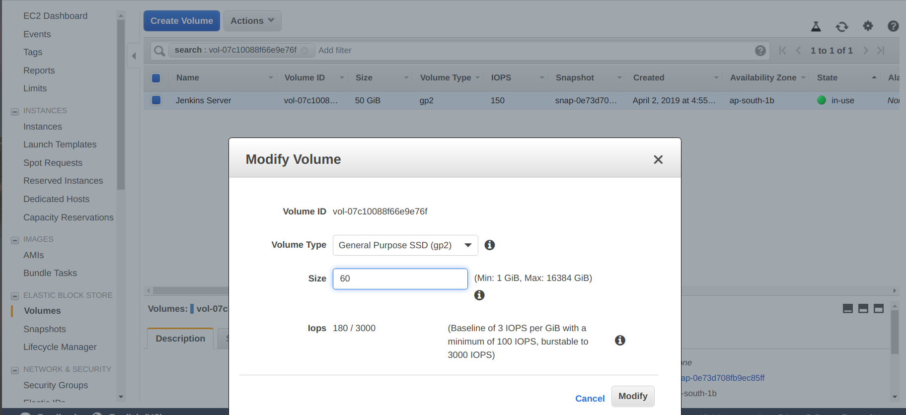 2) Login to your aws console and than go to the volumes in your EC2 dashboard and find the volume which you want to increase.