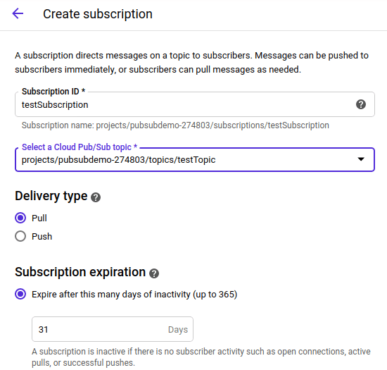 public PubSubInboundChannelAdapter messageChannelAdapter(@Qualifier("demoInputChannel") MessageChannel inputChannel, PubSubTemplate pubSubTemplate) {