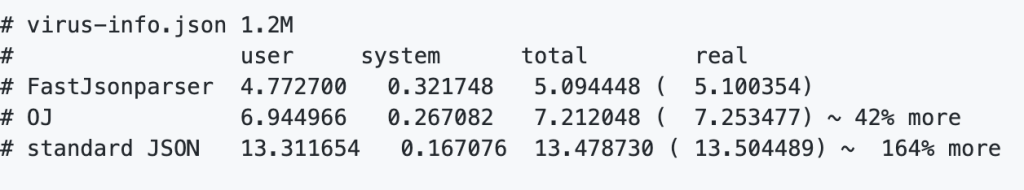 Clearly FastJsonparser outperforms both Oj and ruby’s built in JSON parser