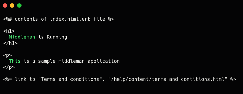 After successful installation of middleman gem, create new middleman application, let’s consider our application name as helpsite.