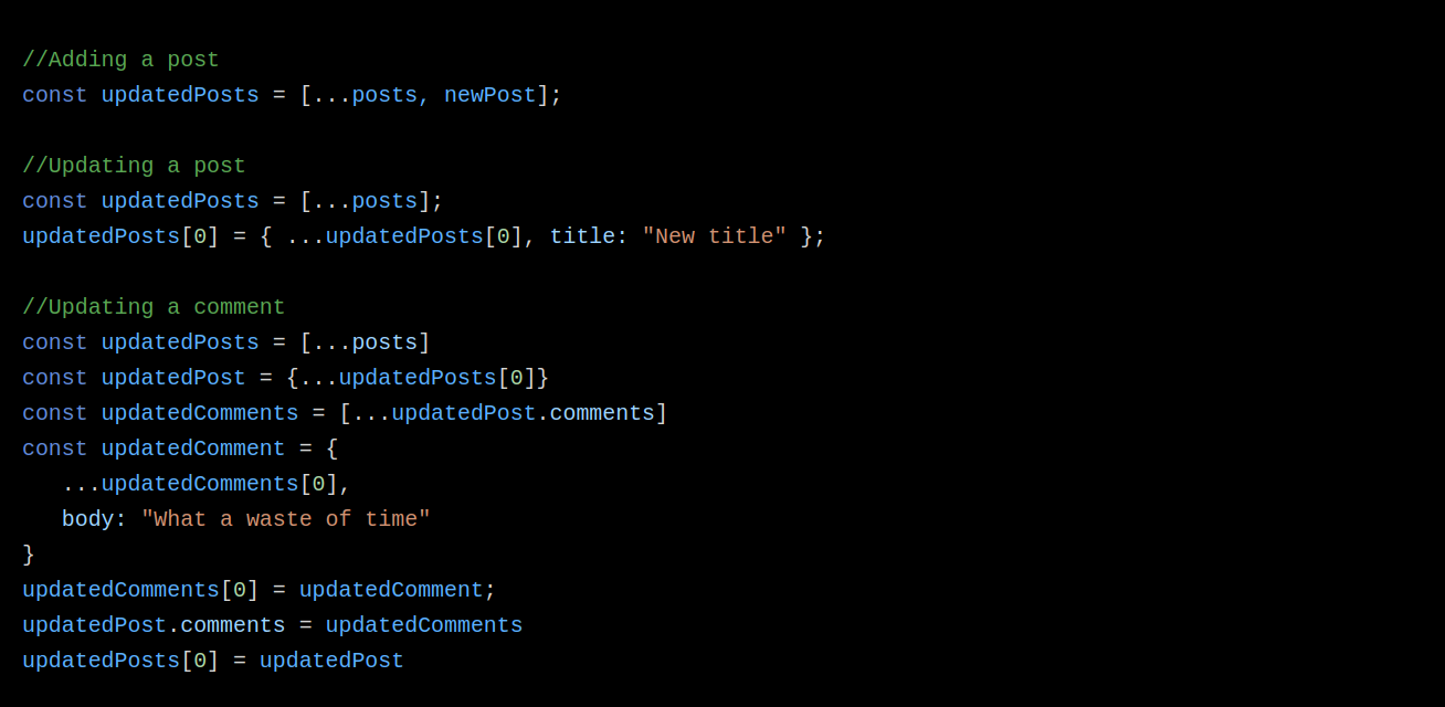 This is what the JSON would look like. Now, when we update posts, we may be doing it at different levels.