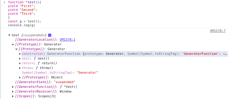 Each Generator has 3 level prototype chaining as in the above image, but at the end, it is the type of ‘object’ In short, In Javascript, everything is the object.