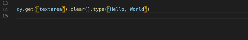 with help of this command, we can clear the content inside the text area and write the text ‘Hello, World’.
