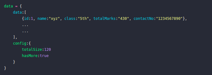 2. object — It contains certain values i.e page, sortField and sortOrder.