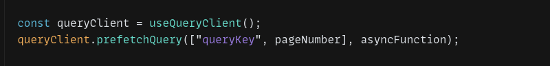 Now I will use prefetchQuery method of queryClient to make the APIcall for the next page and store that data in the cache.