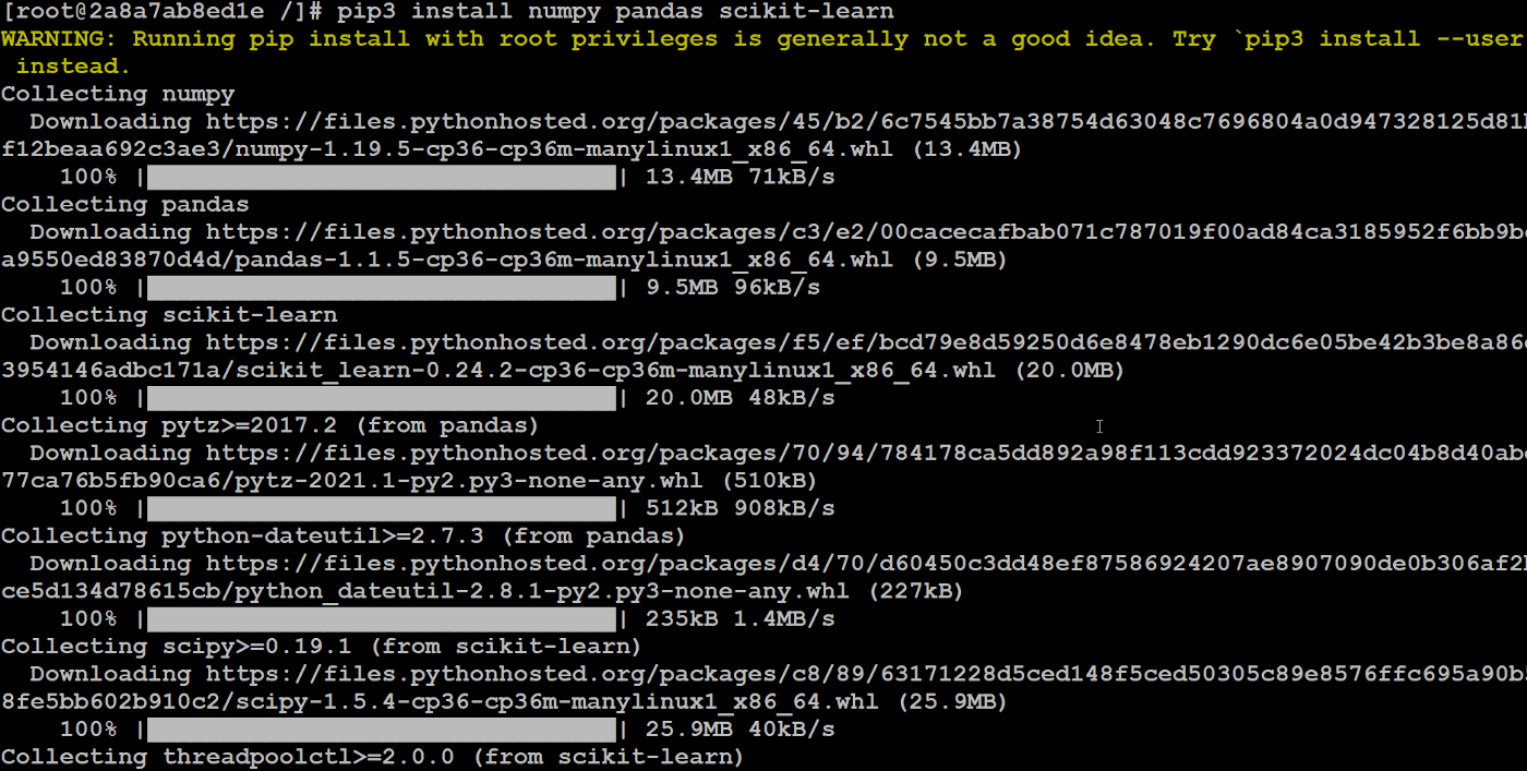 pip3 install numpy pandas scikit-learn