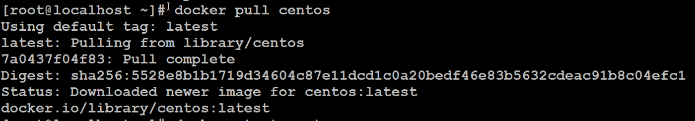 Use the command docker pull with os_name for installing the particular os/container or pulling the image file of that particular os/container, here I have pulled centos os