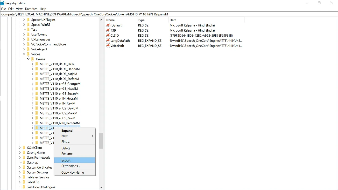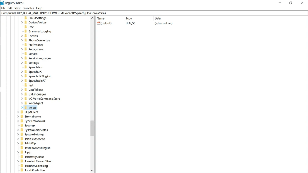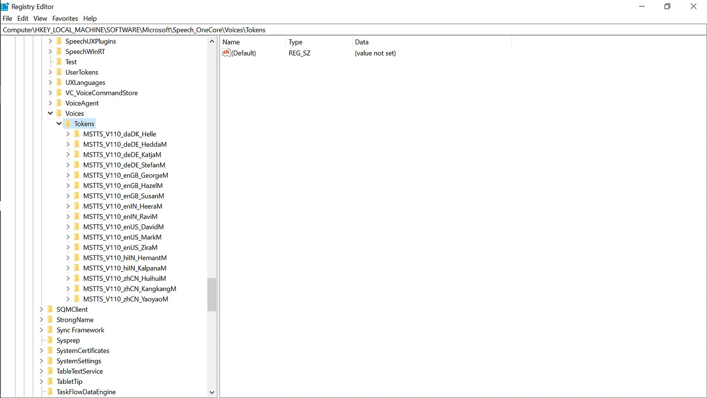 HKEY_LOCAL_MACHINE\SOFTWARE\Microsoft\SPEECH_OneCore\Voices\Tokens\