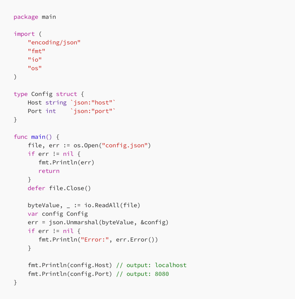 Unmarshal JSON to a Go Struct (Reading configuration Files)