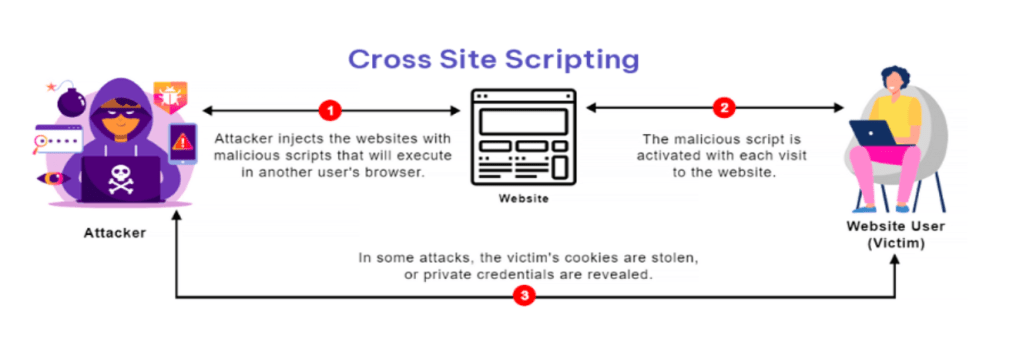 - Cross-site Scripting (XSS) is a client-side code injection attack. The attacker targets to execute malicious scripts in a web browser of the victim/user by including malicious code in a legitimate web page or web application. The actual attack occurs when the victim visits the web page or web application that executes the malicious code. The web page or web application becomes a vehicle to deliver the malicious script to the user’s browser.