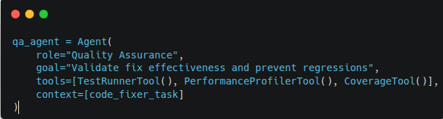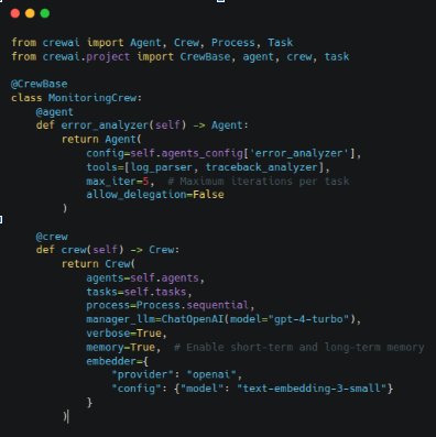 We assembled these agents into a Crew within CrewAI, defining a workflow where outputs from one agent become inputs for the next. CrewAI’s orchestration logic ensures agents run in the correct order and can communicate via shared context, making the pipeline resilient and modular.