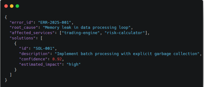 - Generates 3-5 solution candidates with confidence scores